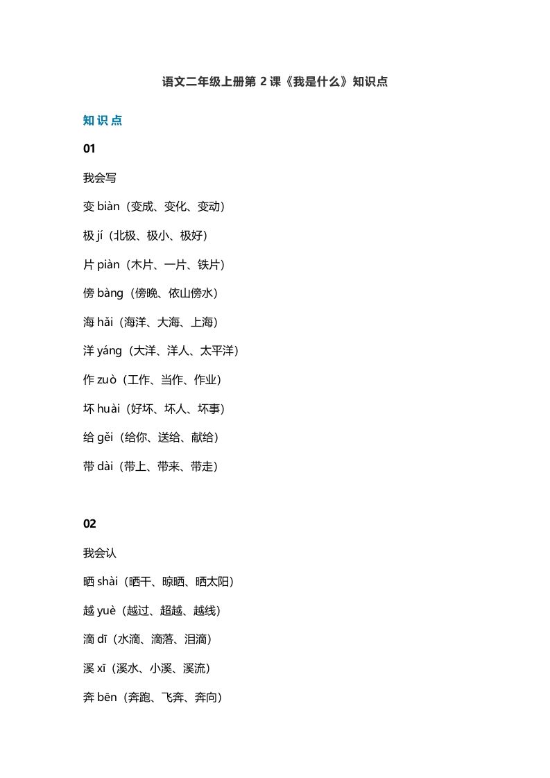 二年级语文册2第2课《我是什么》知识点-【免费下载-高清无水印】【语文电子版可打印】