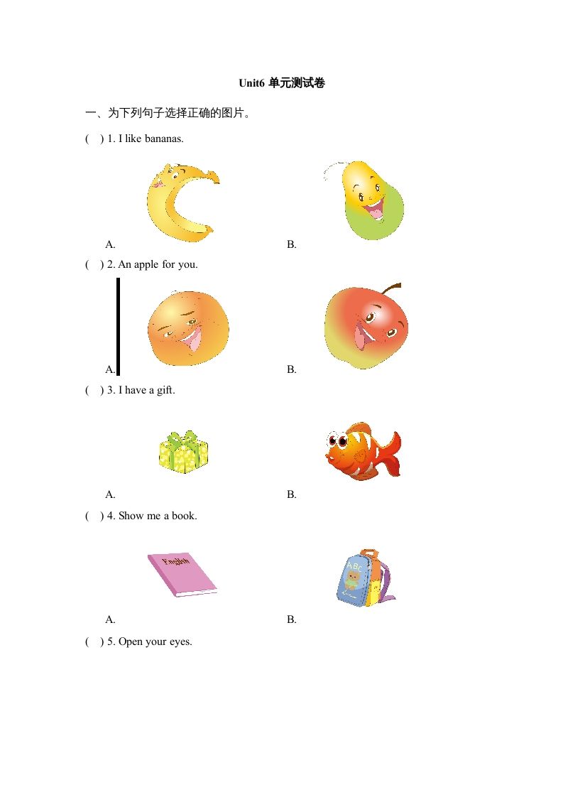 一年级英语册Unit6_单元测试卷-【免费下载-高清无水印】【英语电子版可打印】