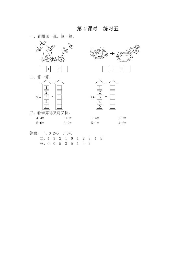 一年级数学册第4课时练习五-【免费下载-高清无水印】【数学电子版可打印】