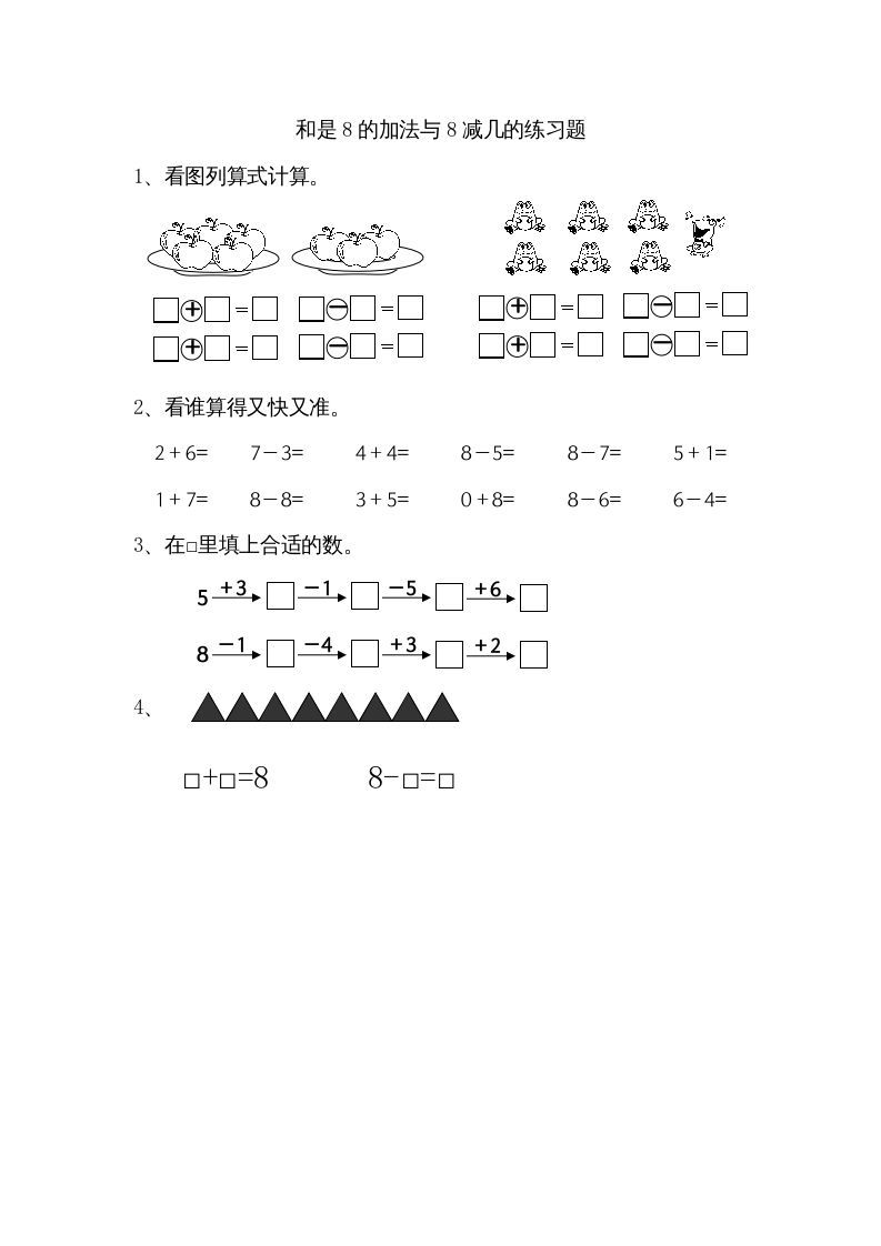 一年级数学册8.6得数是8的加法和8减几-【免费下载-高清无水印】【数学电子版可打印】