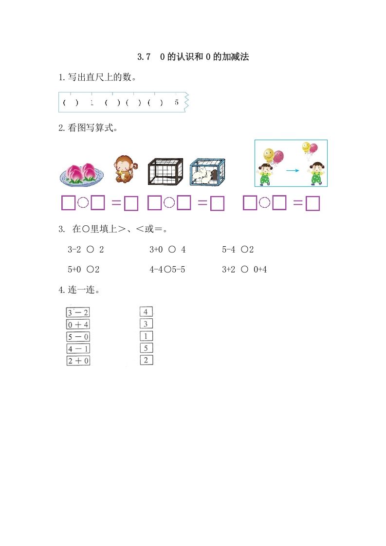 一年级数学册3.70的认识和0的加减法-【免费下载-高清无水印】【数学电子版可打印】